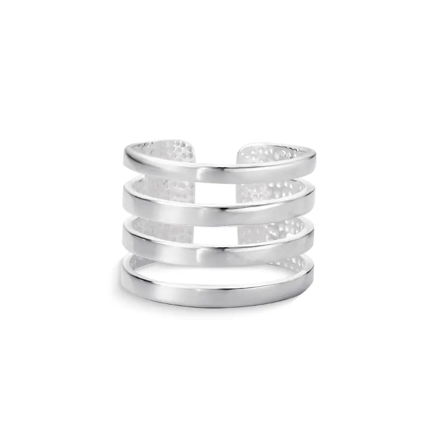 Sleek, simple, and effortlessly stylish. The 4-Layer Celestia Ring features a bold layered band that wraps your finger in modern elegance. Designed for women who love clean lines and timeless shine, it’s a versatile piece that makes a quiet statement, day or night