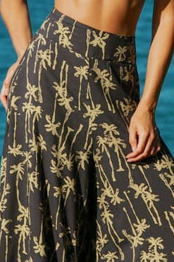 Designed to flow with every step, the Palm Flow Pants bring effortless movement and quiet confidence to your resort wardrobe. Crafted in a lightweight fabric with a fluid drape, this piece sits high on the waist and elongates the silhouette while embracing the natural rhythm of island living. Easy, elegant, and endlessly wearable from beach to sunset.