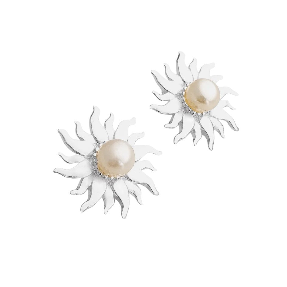 A radiant pair that mirrors the power of the sun, the Solara Earrings capture the bold spirit of those who lead with warmth and confidence. With fiery rays and luminous pearls, they symbolize feminine light, inner renewal, and graceful strength. Part of the Maré Collection, they’re a statement of beauty that shines from within, effortless, eternal, and empowering.
