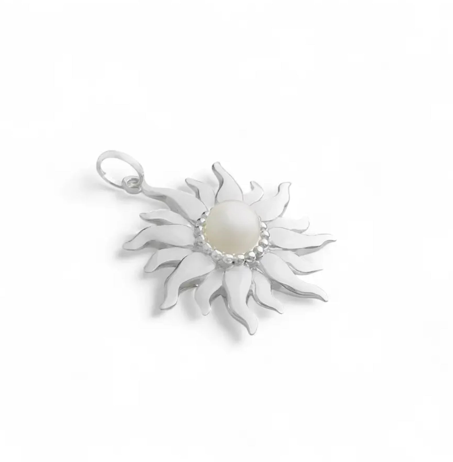 A tribute to light, power, and inner clarity, the Solara Pendant glows with sun-kissed energy. With flowing flame-like rays surrounding a luminous pearl, it represents the strength of women who radiate warmth, resilience, and authenticity.